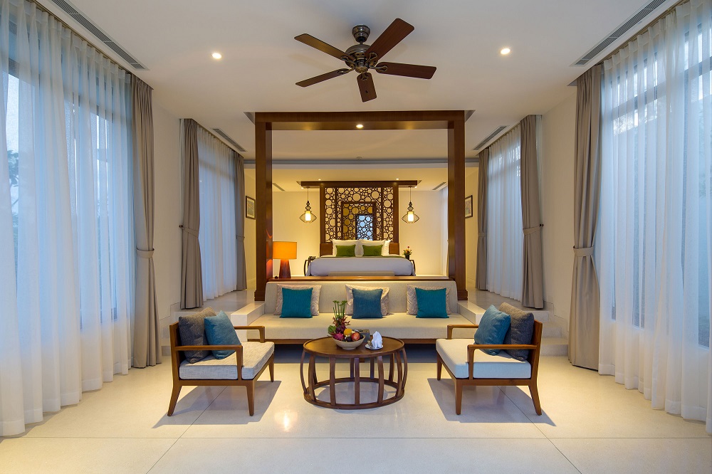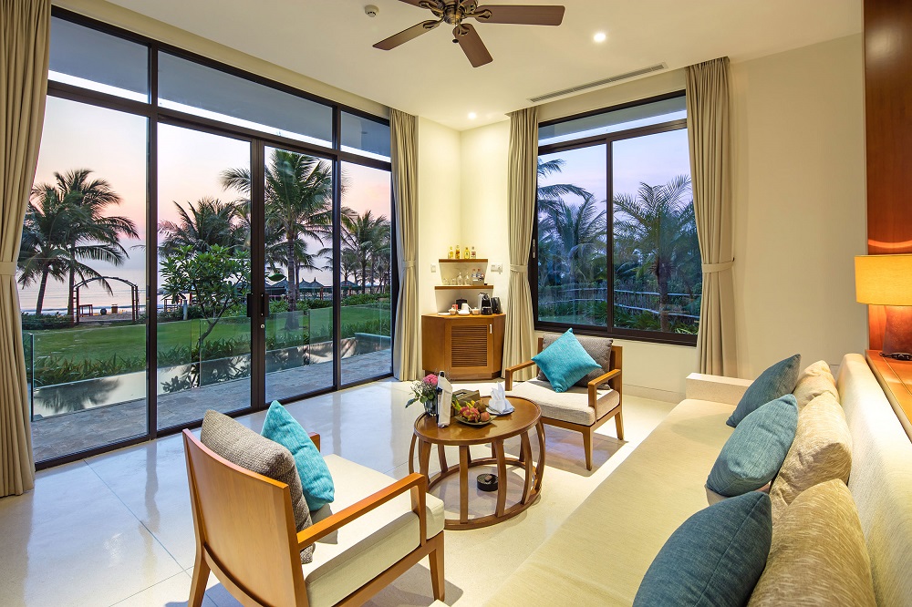 These luxurious seafront pool villas are the ultimate escape for romantic couples to celebrate special occasions and honeymoons. Guests can enjoy supreme privacy and outstanding views with nothing between the villas and the Bai Dai Beach but lush lawn, tall coconut palms and soft sands.